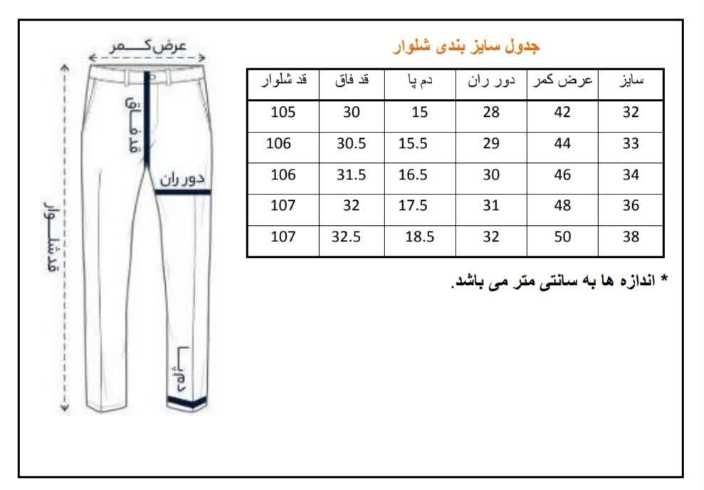 برای انتخاب سایز مناسب خود در تصاویر به جدول سایز بندی مراجعه فرمایید