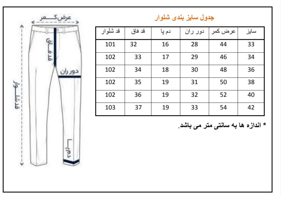 برای انتخاب سایز مناسب در تصاویر به جدول سایز بندی مراجعه فرمایید