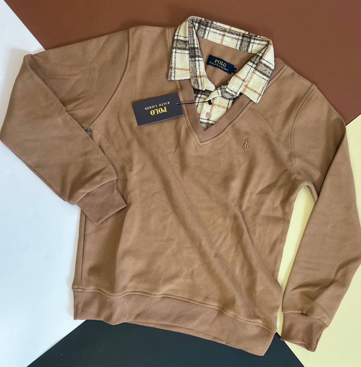 پلیور مردانه سلانیک قهوهای شتری یقه پیراهنی (دو یقه)