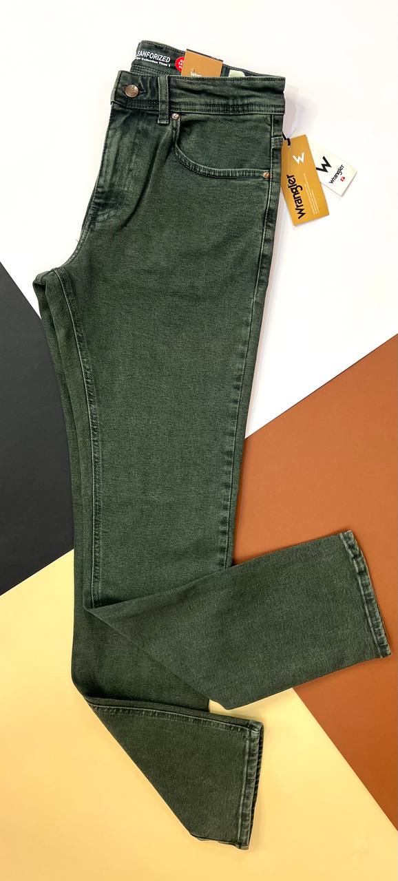 شلوار جین مردانه Wrangler راسته رگولار | سبز زیتونی تیره | جین کشی