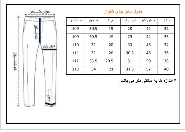 برای انتخاب سایز مناسب خود در تصاویر به جدول سایز بندی مراجعه فرمایید