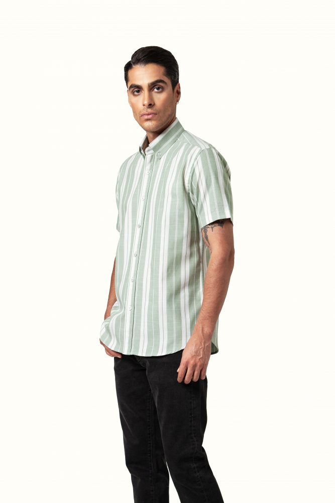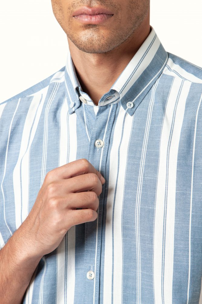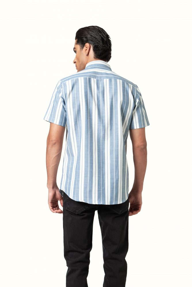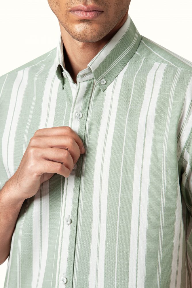پیراهن مردانه آستین کوتاه پنبهای راهراه | خنک و راحت تابستانی