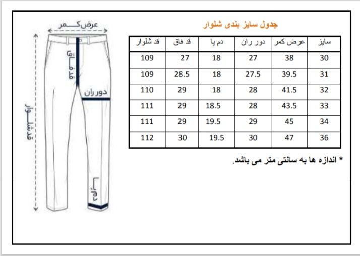 برای انتخاب سایز مناسب خود در تصاویر به جدول سایز بندی مراجعه کنید.