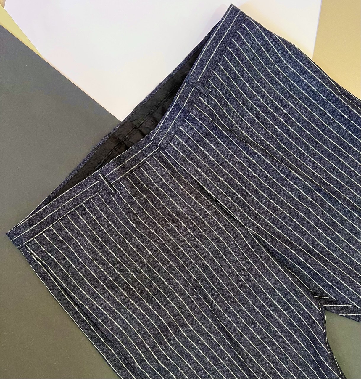 رنگ سرمهای تیره در کنار خطوط راهراه سفید، ظاهری مرتب، کلاسیک و قابل اعتماد ایجاد میکند.